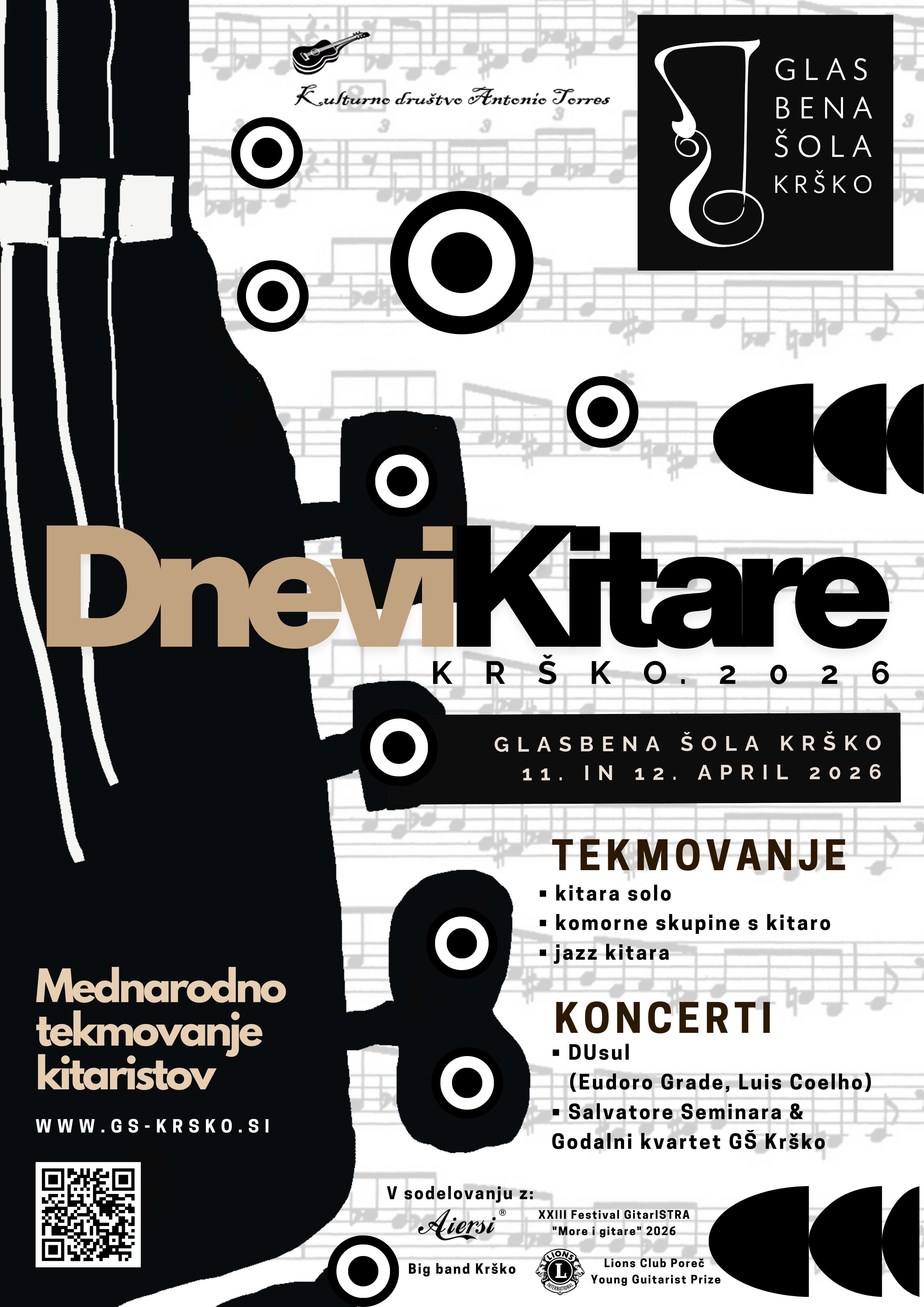 Glasbena šola Krško in Društvo Antonio Torres razpisujeta mednarodno tekmovanje, ki bo potekalo v Krškem 11. in 12. aprila 2026.